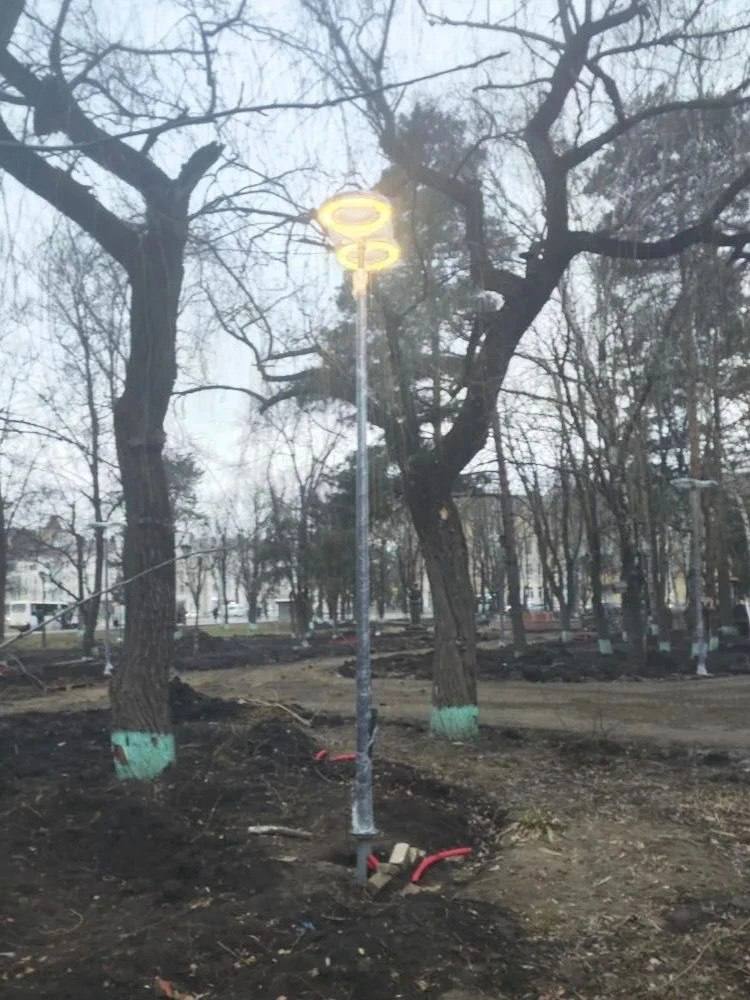 Специалисты установили около 30 торшеров, проложили кабели для освещения и видеонаблюдения.
