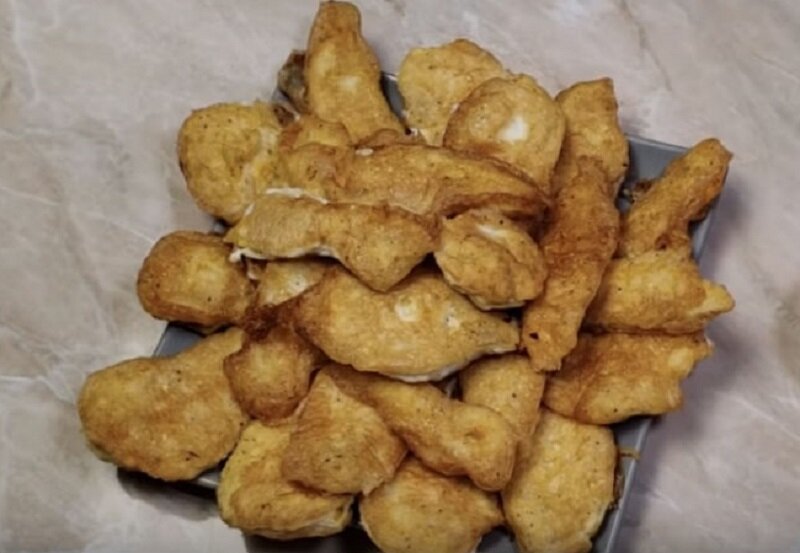 На сковороде разогрейте достаточное количество масла, пока оно не начнет кипеть. Затем уменьшите нагрев до среднего. Обмакивайте подготовленное куриное филе в белковую массу с помощью кулинарных щипцов и обжаривайте по 2-3 минуты с каждой стороны до золотистой корочки.