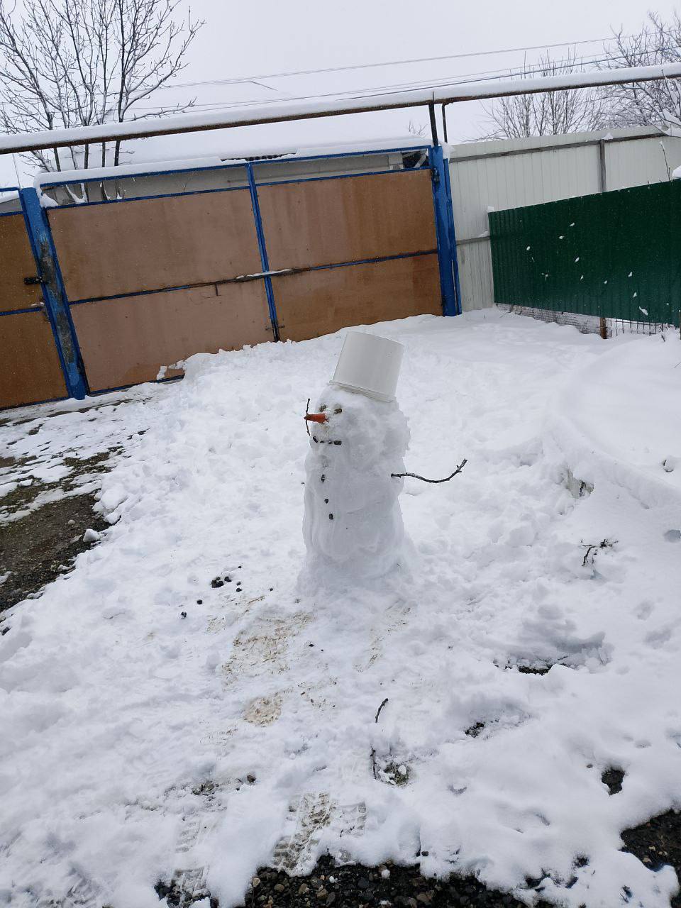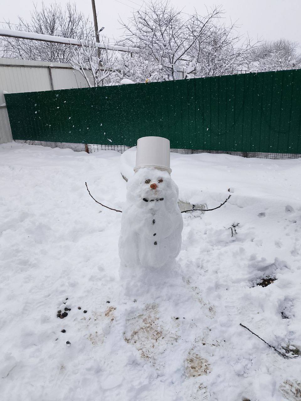 Подписчики поделились фотографией снеговика, слепленного в станице Боргустанской.