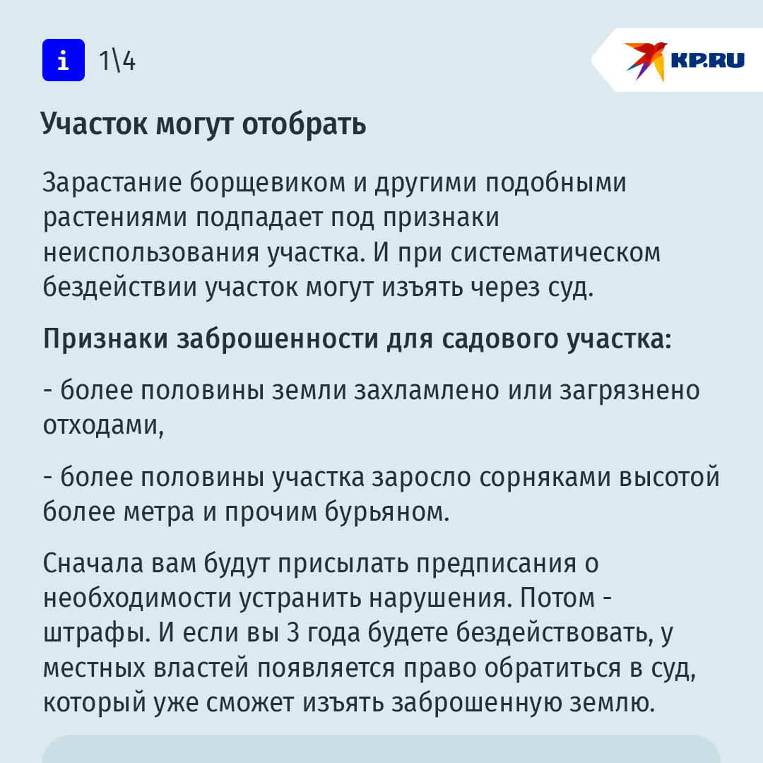 Теперь землевладельцы под угрозой суровых штрафов обязаны бороться со всеми "опасными инвазивными (чужеродными) растениями". Требование распространяется на всех собственников участков, землепользователей, арендаторов. Под действие закона подпадают в том числе владельцы садовых и дачных участков.
