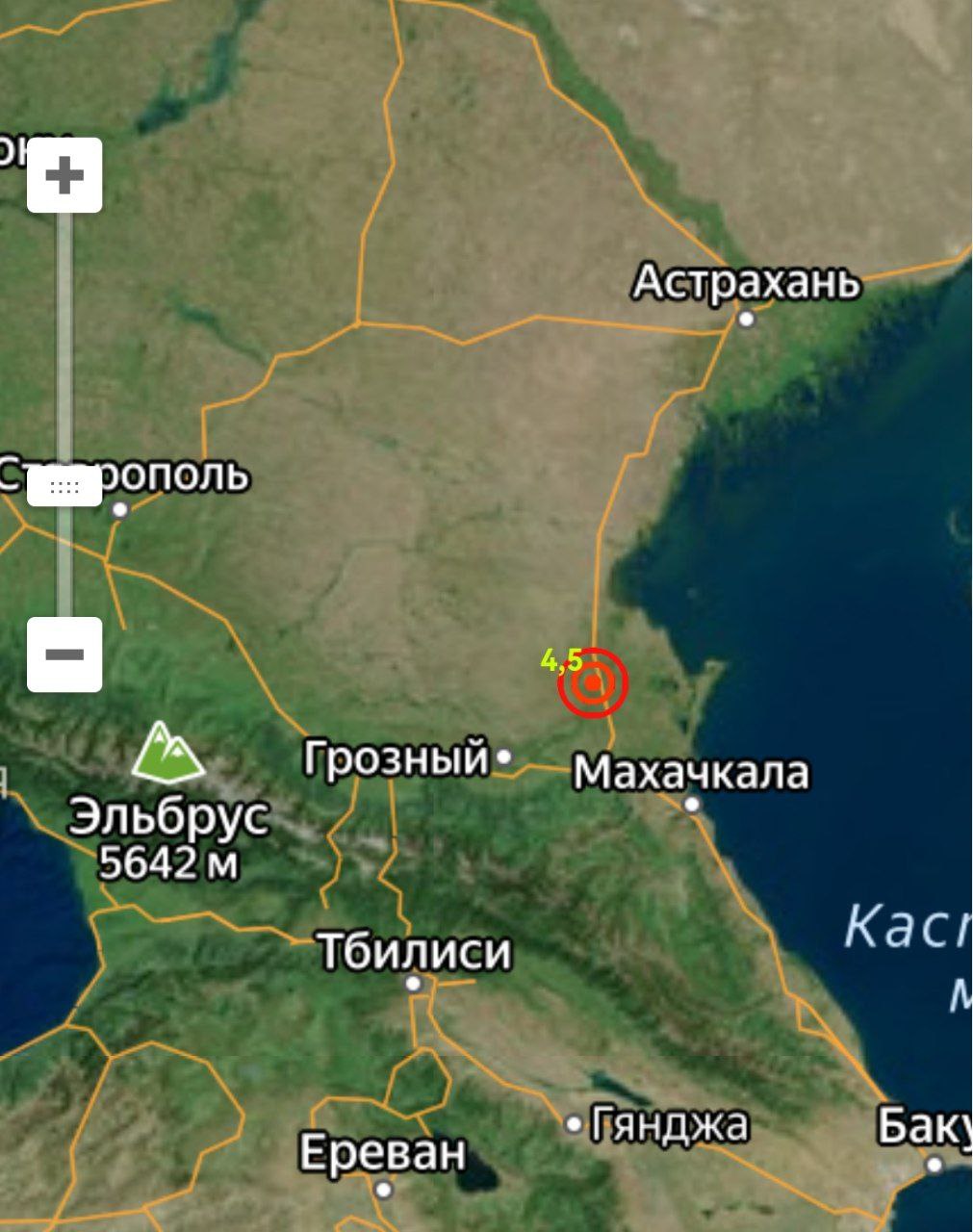 Землетрясение магнитудой 4.5 произошло на границе Дагестана и Чечни