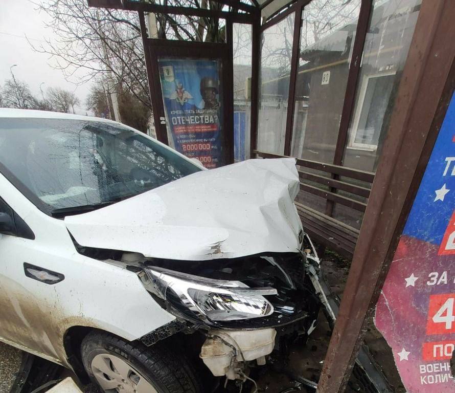 Инцидент произошёл 6 марта около 13 часов. Водитель Kia не справился с управлением, врезался в машину такой же марки и въехал в остановку общественного транспорта.