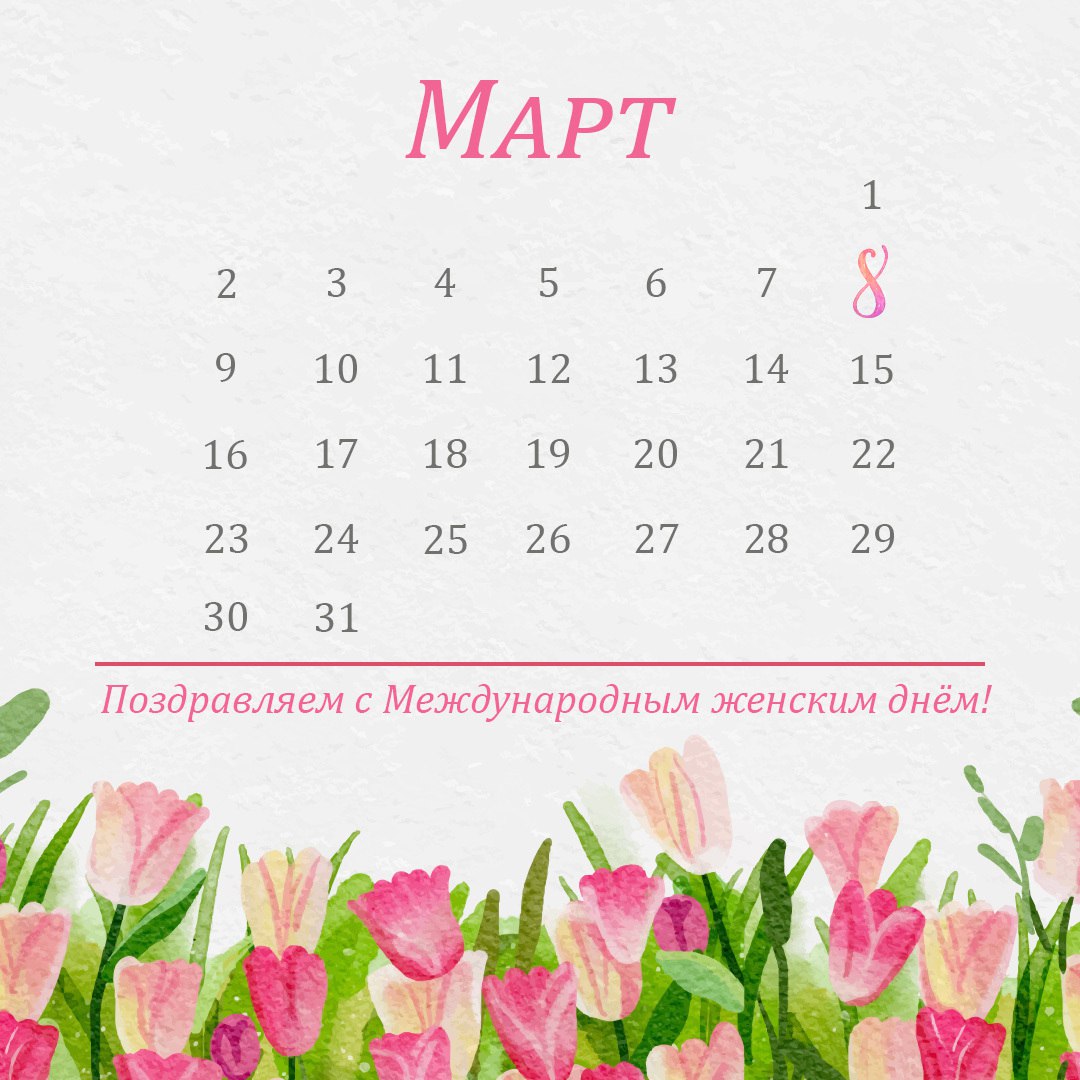 Сердечно поздравляем девочек, девушек и женщин с 8 Марта! Желаем, чтобы в вашей душе всегда царили свет и весна. Пусть успех сопровождает вас во всех начинаниях, а здоровье будет крепким.