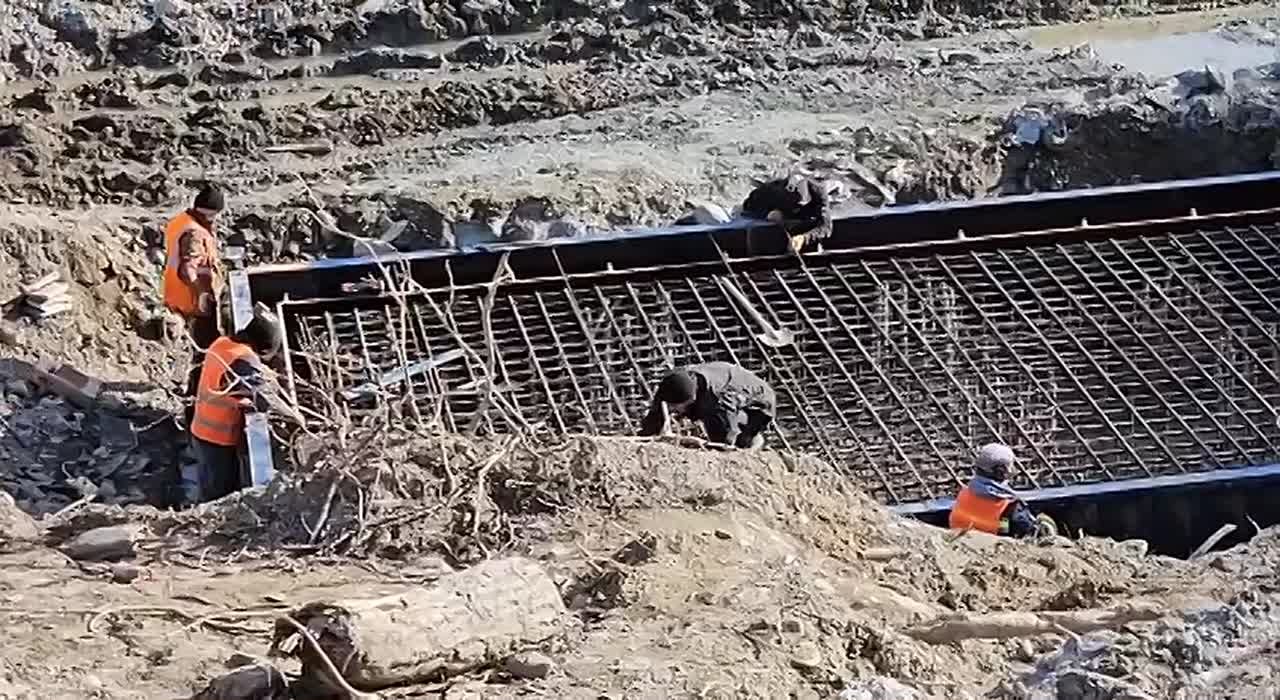 Завершен монтаж еще одного свайного поля на левом берегу и начат монтаж свайного поля на правом берегу реки.