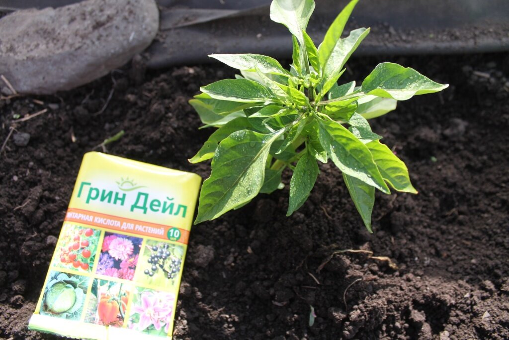При пересадке рассады использование янтарной кислоты помогает справиться со стрессом. Для этого рассада должна находиться в растворе 2-3 часа перед высадкой.