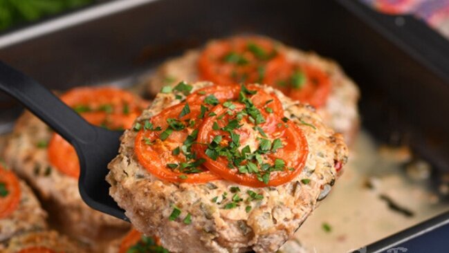 • По истечении указанного времени, убираем мясо и добавляем нарезанные кружками помидоры. Возвращаем в духовку ещё на 15 минут.