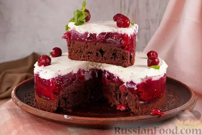 - Шоколадный торт с вишней – этот десерт завоевывает сердца своей неповторимой комбинацией мягкого шоколадного коржа с ярким вишнёвым киселем, покрытым легким сливочным кремом. Такой торт станет настоящим украшением праздника.