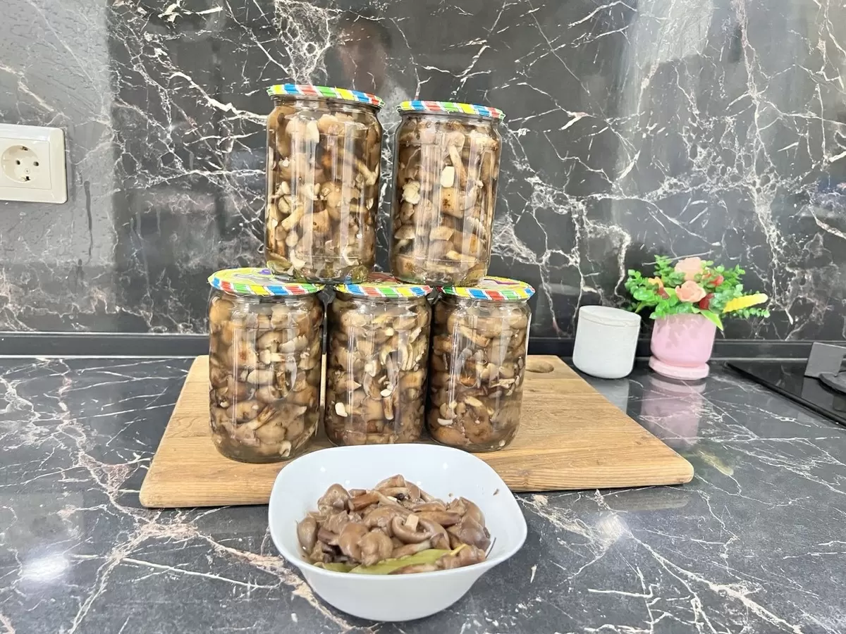 Готовые грибы раскладываются по подготовленным стерилизованным банкам, которые затем заливают горячим маринадом. После закрытия крышек банки следует перевернуть и оставить в таком положении до полного остывания. Это поможет сохранить их свежими и ароматными на протяжении всей зимы.