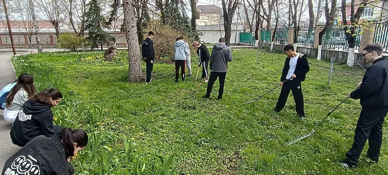 Ученики школы № 3 города Ессентуки приняли участие в трудовом десанте по очистке территории школы.
