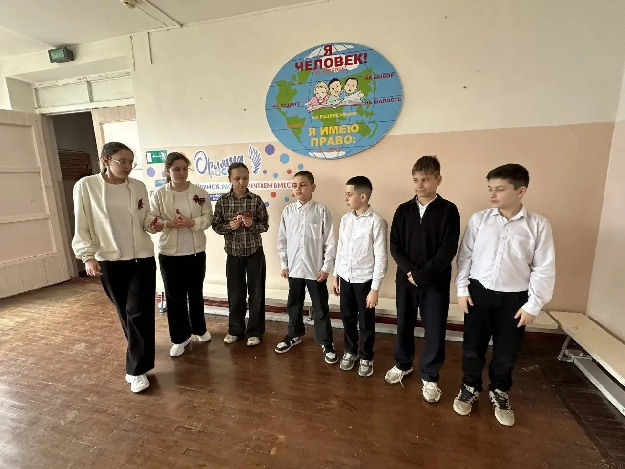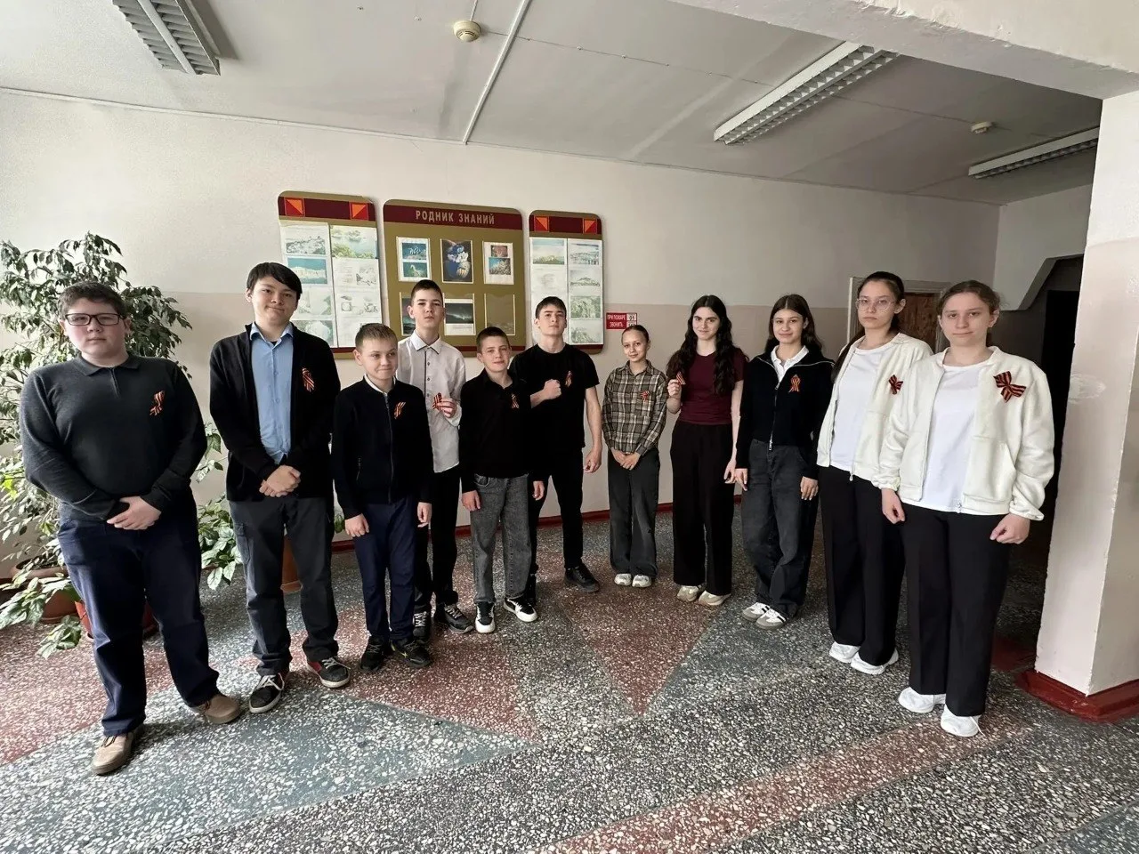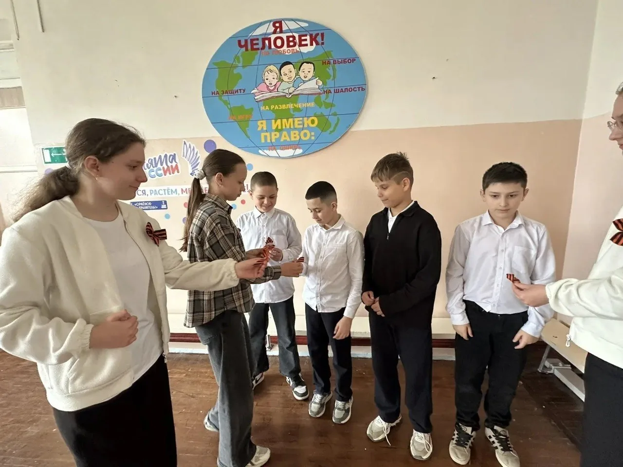 В школе № 1 города Ессентуки прошли беседы об истории ленты и акции, а волонтёры Движения Первых раздают её всем желающим.