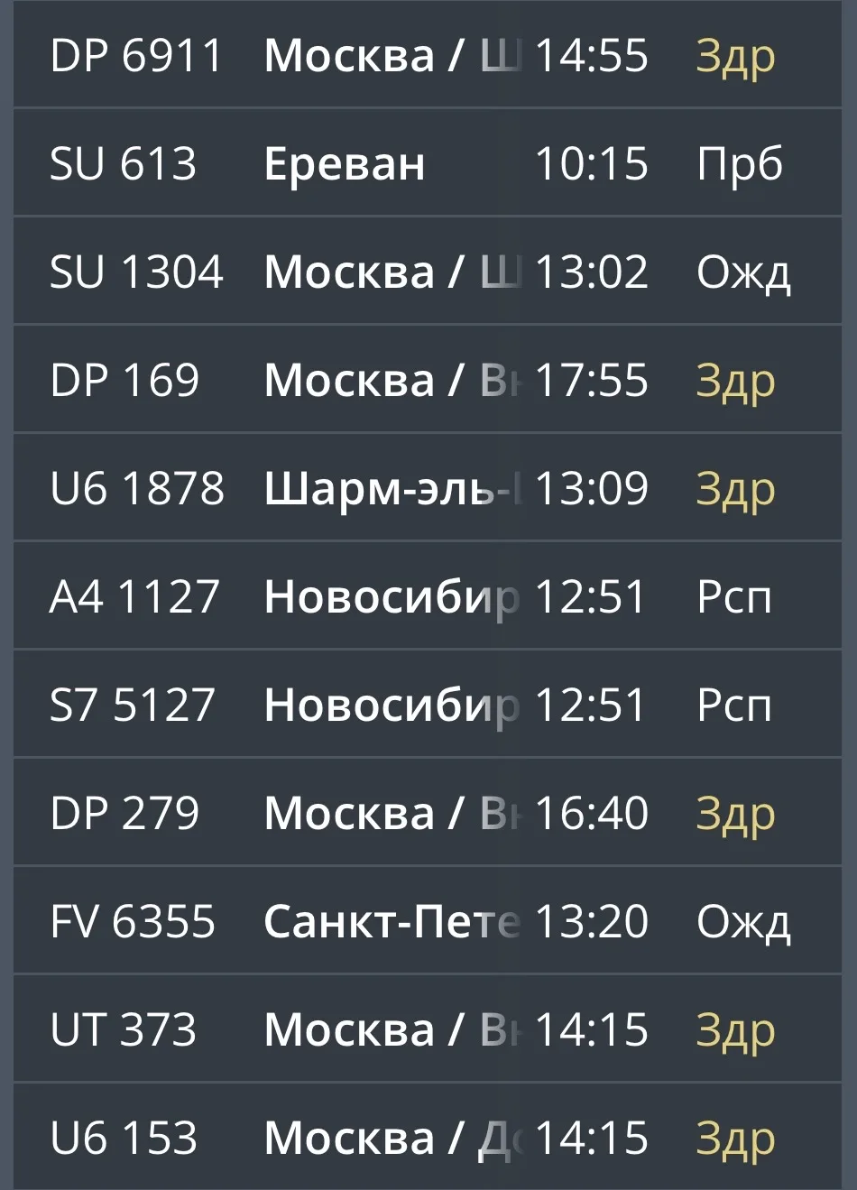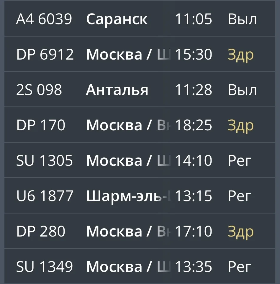 Отстают от расписания 9 бортов на прилет и 6 — на вылет.