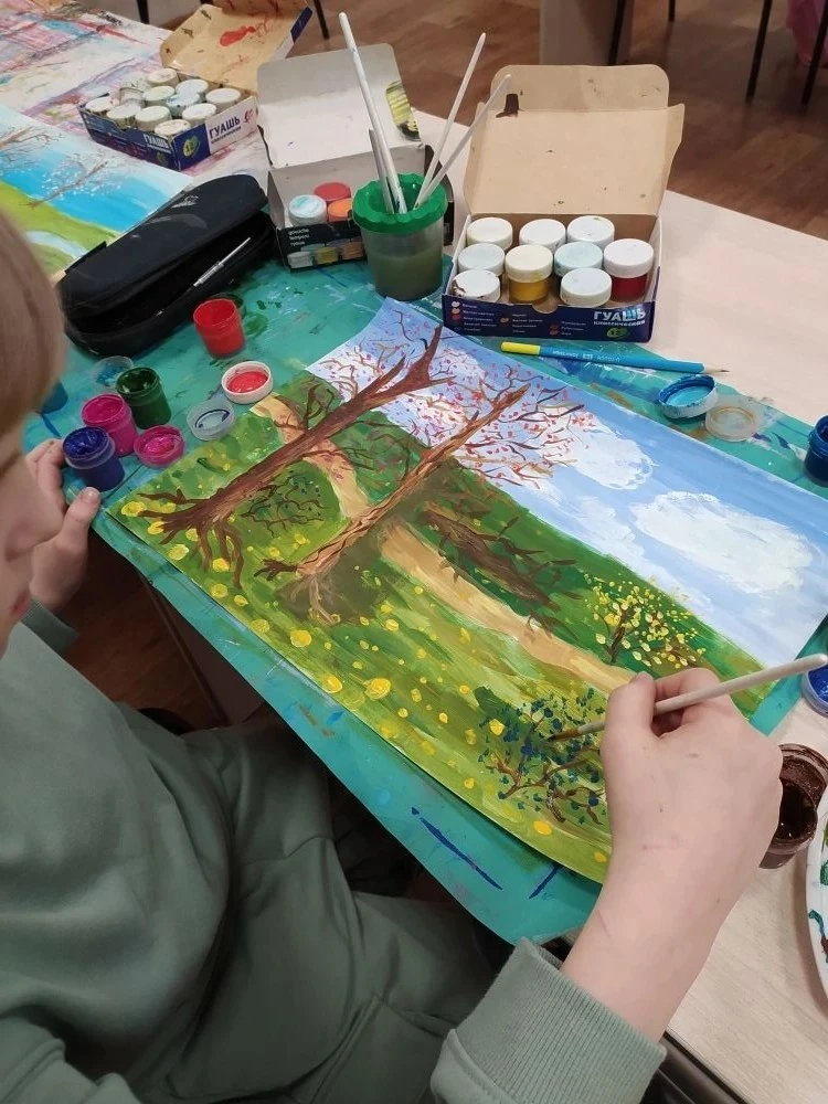 На мастерклассе «Рисуем весну» в объединении "Колорит" под руководством Анны Фёдоровой обучающиеся создали настоящие маленькие шедевры.