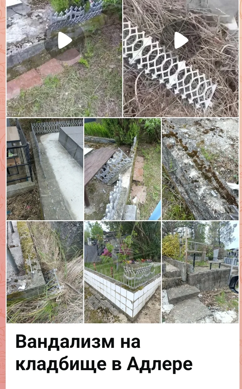 В сети Интернет выявлена публикация, в которой местный житель сообщает о повреждении ограждений на кладбище в Адлере.