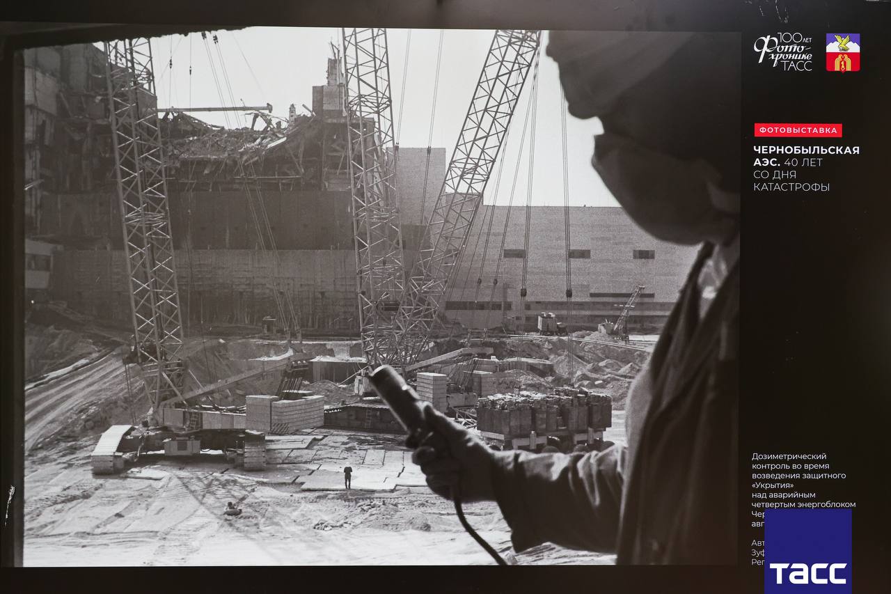 "Взрыв на 4-м энергоблоке Чернобыльской АЭС произошел в ночь с 25 на 26 апреля 1986 года. Это событие стало одним из самых трагических в истории СССР и атомной энергетики, крупнейшей техногенной катастрофой ХХ века по масштабам ущерба и последствиям. Экспозиция посвящена памяти и подвигу всех, кто устранял последствия этой аварии - это десятки тысяч специалистов со всей страны: пожарных, тушивших в первые часы разрушенный энергоблок, солдат и офицеров Вооруженных сил СССР, разбиравших завалы после взрыва, атомщиков, врачей, летчиков, ученых и многих-многих других. На выставке представлено 26 исторических снимков из медиабанка ТАСС", - отметил на открытии фотовыставки директор по стратегии ТАСС Сергей Кузовников.
