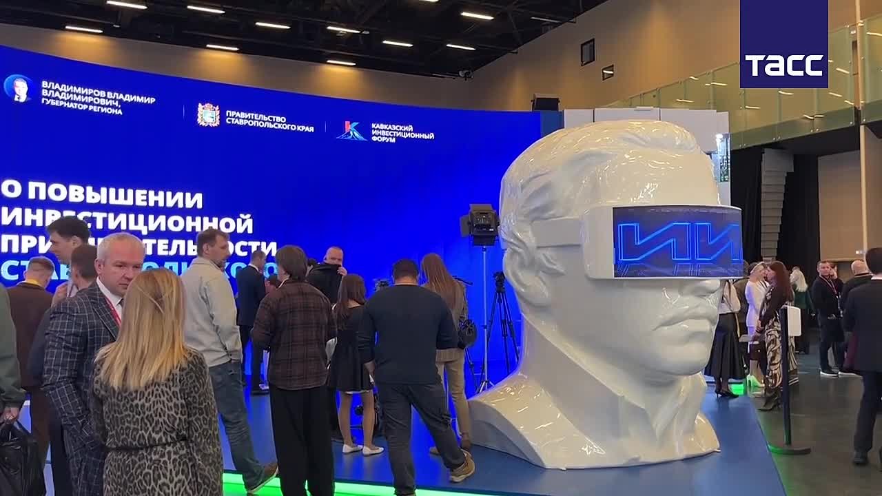 Стенд Ставропольского края на Кавказском инвестиционном форуме отличился трехметровым бюстом Михаила Лермонтова в очках дополненной реальности. Инсталляция достигает трех метров, передает корреспондент ТАСС с открытия стенда региона в рамках Кавказского инвестиционного форума.