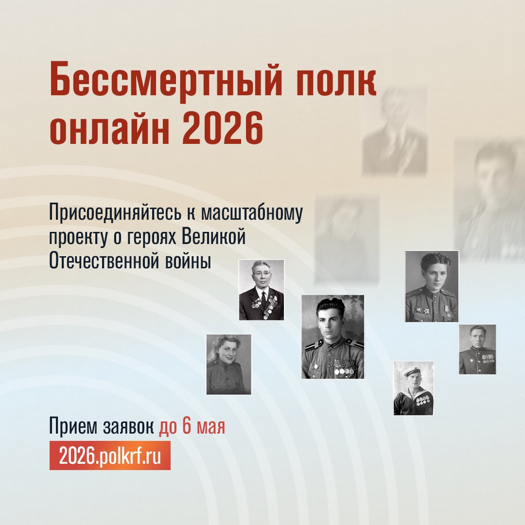 Онлайн-шествие героев традиционно пройдет в 9 мая в 12:00 на официальном сайте 2026.polkrf.ru