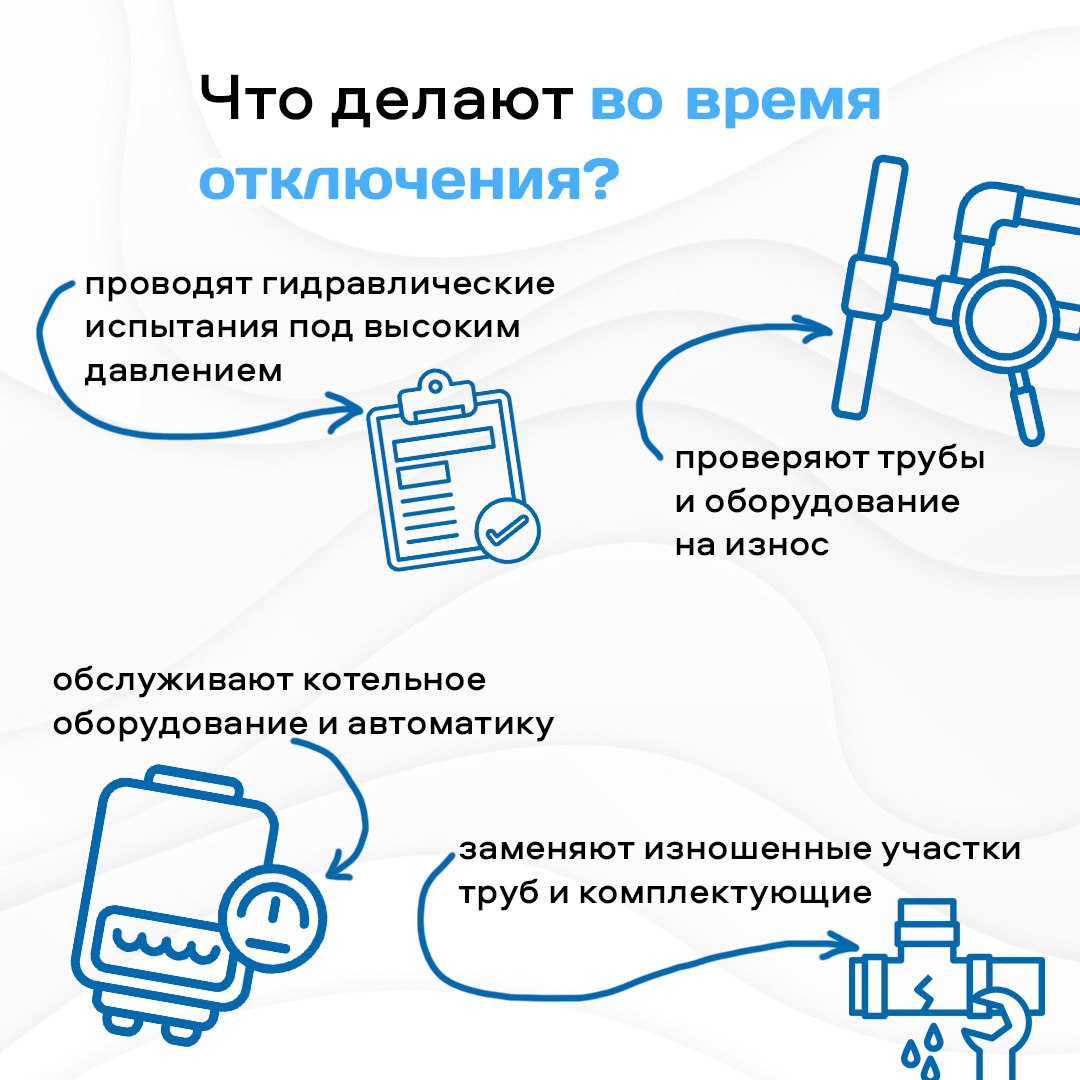 Отключения горячей воды в теплый период нужны для подготовки к отопительному сезону. Трубы проверяют, ремонтируют и испытывают под давлением, чтобы зимой всё работало надёжно.