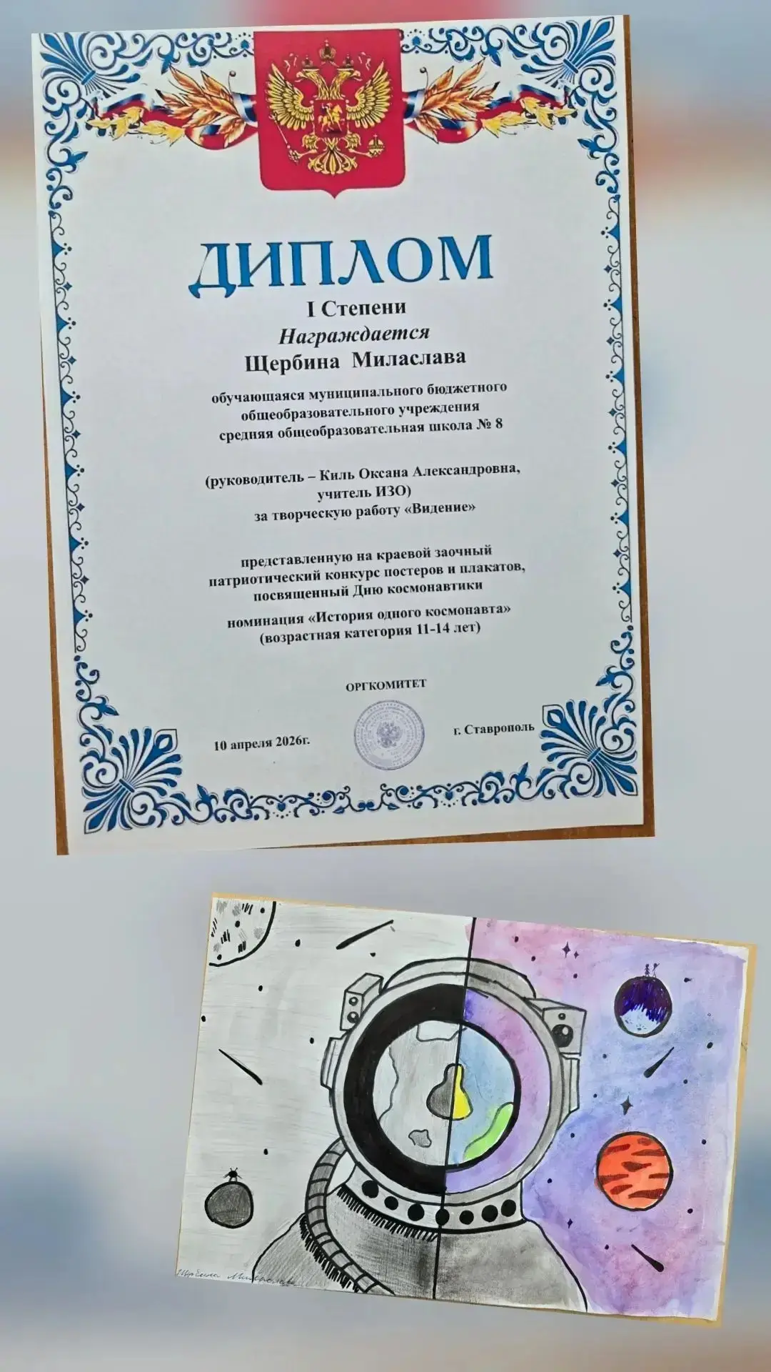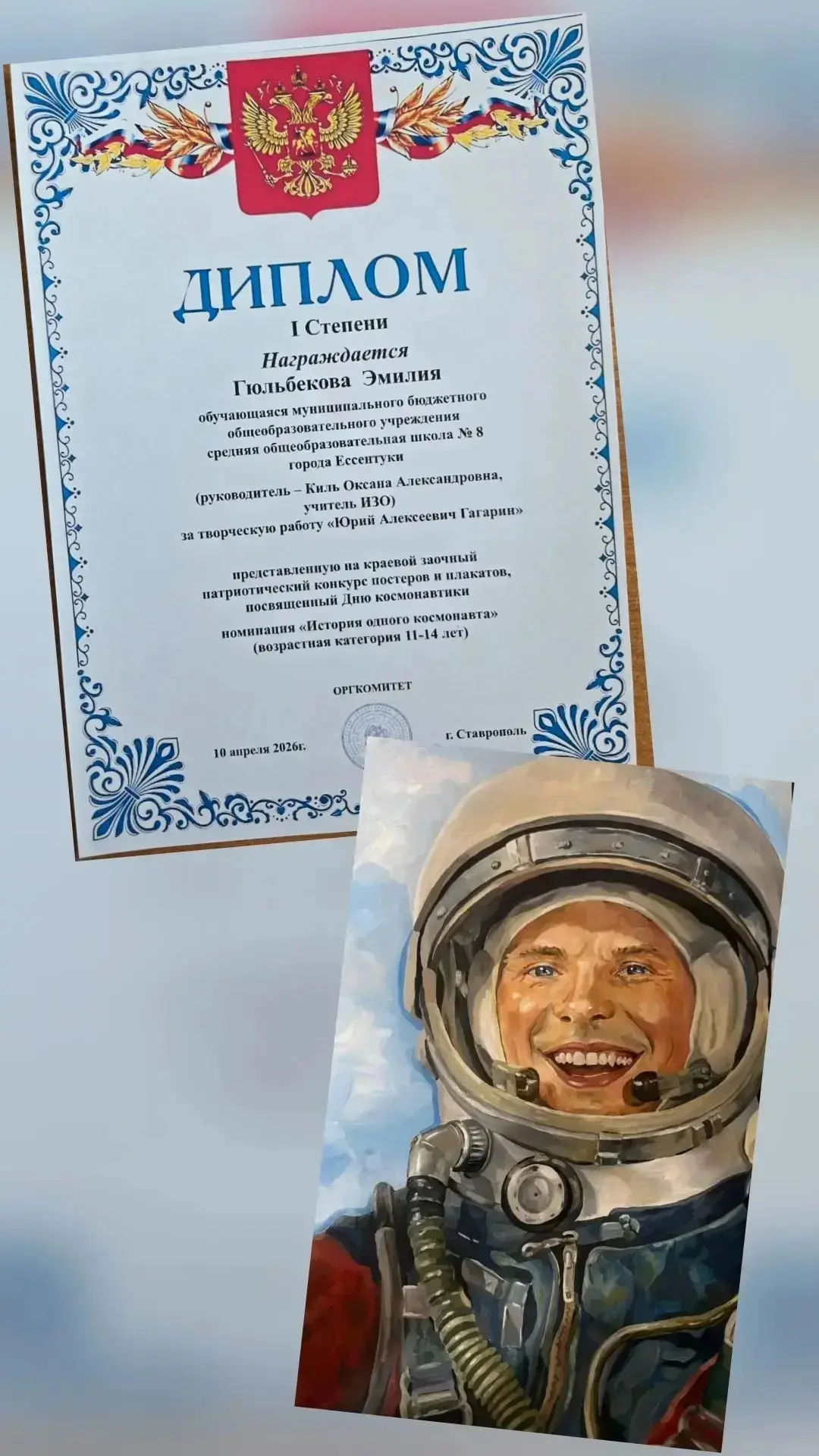 Поздравляем обучающихся МБОУ СОШ N 8, ставших победителями и призерами краевого заочного патриотического конкурса постеров и плакатов, посвященных 65-летию первого полета человека в космос :