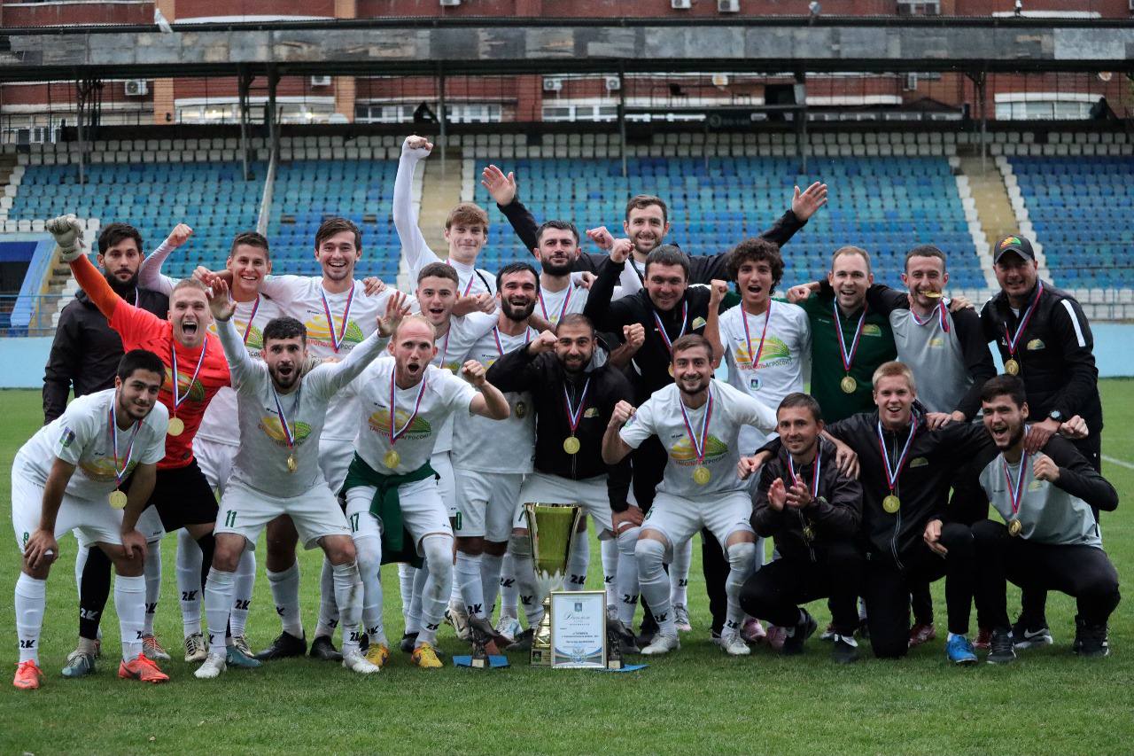 Победой невинномысского клуба «СтавропольАгроСоюз» завершился чемпионат Южного и Северо-Кавказского федеральных округов по футболу. Дружина под управлением тренера Кирилла Эйдельнанта завоевала главный приз уже четвертый раз в своей истории.