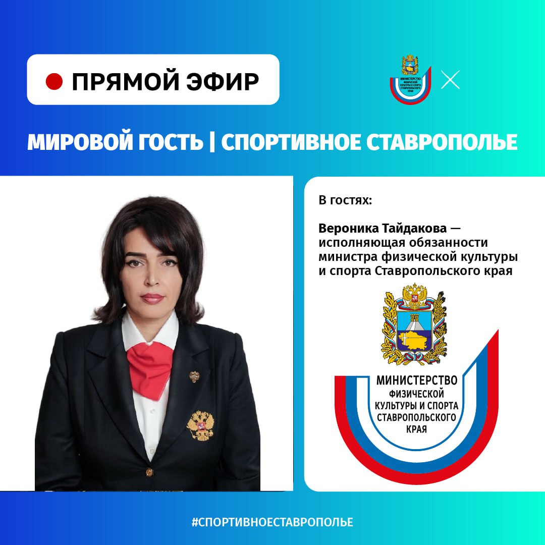 На эти и многие другие вопросы в прямом эфире очередного, 41-го выпуска совместного проекта министерства физической культуры и спорта Ставропольского края и «Радио МИР-Ставрополь» - программы «Мировой гость. Спортивное Ставрополье», ответит исполняющая обязанности министра физической культуры и спорта Ставропольского края Вероника Тайдакова.