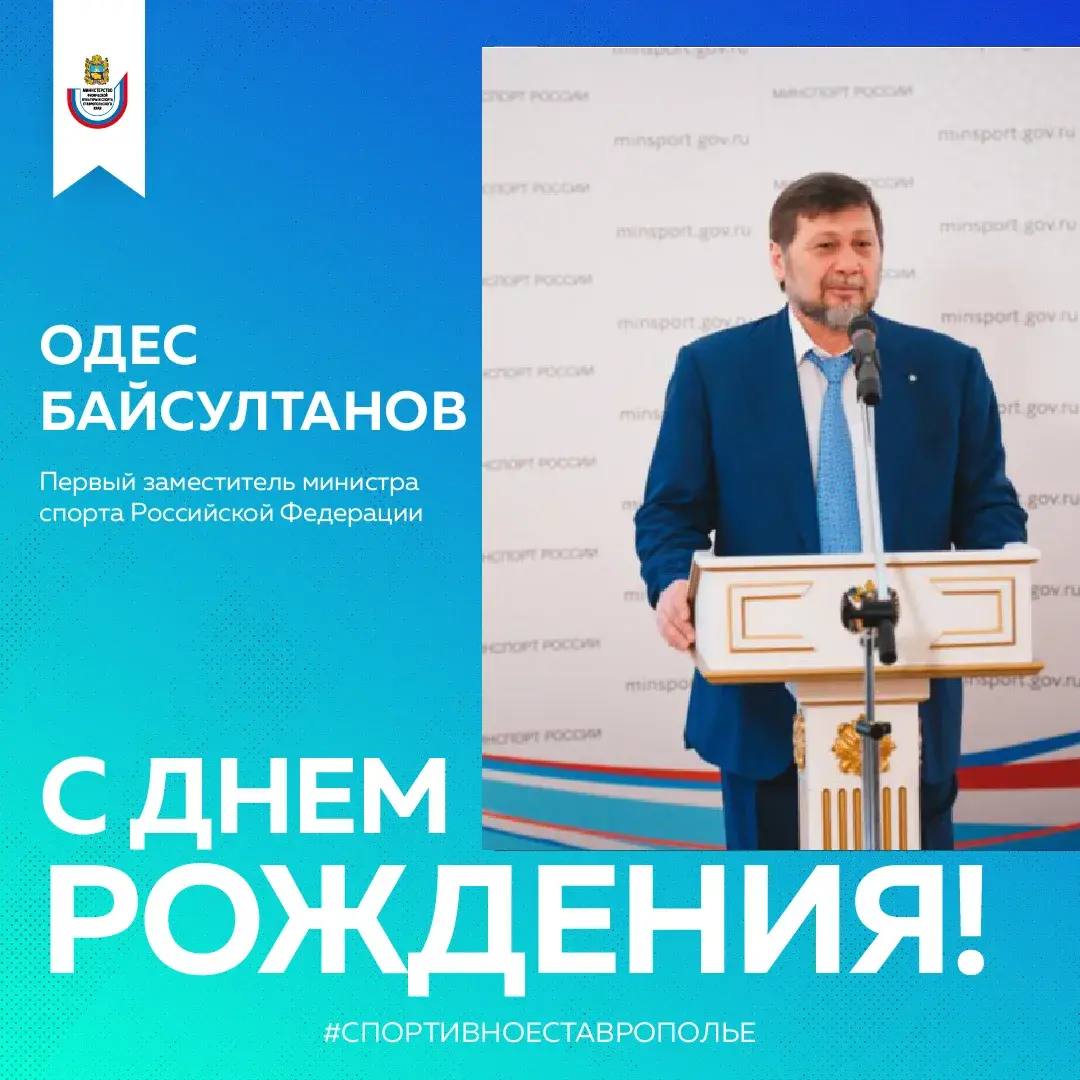 Министерство физической культуры и спорта Ставропольского края поздравляет первого заместителя Министра спорта Российской Федерации Одеса Хасаевича Байсултанова с днём рождения.