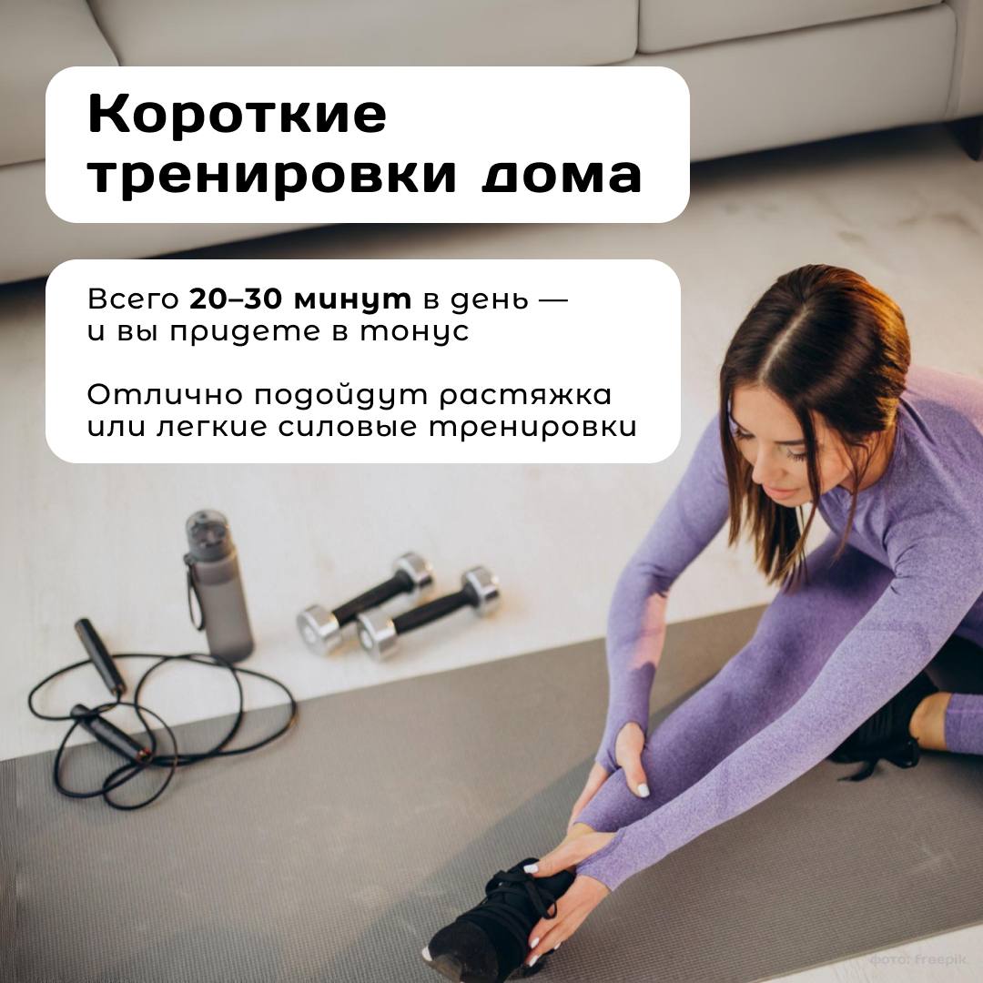 В карточках рассмотрим простые шаги, которые помогут вновь обрести форму и мотивацию для занятий спортом в новом году