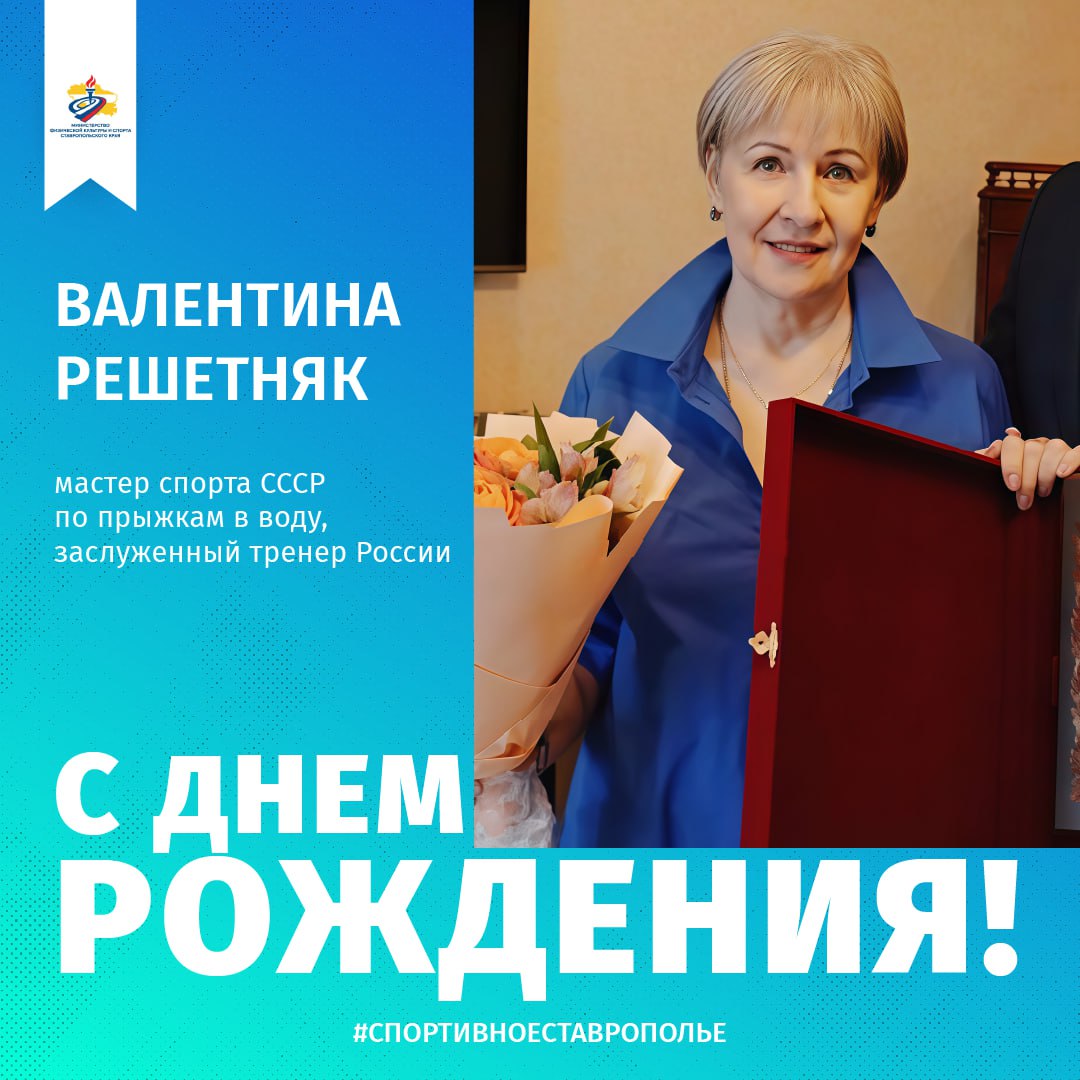 Сегодня свой день рождения отмечает легендарный ставропольский наставник, мастер спорта СССР по прыжкам в воду, заслуженный тренер России Валентина Арсентьевна Решетняк!